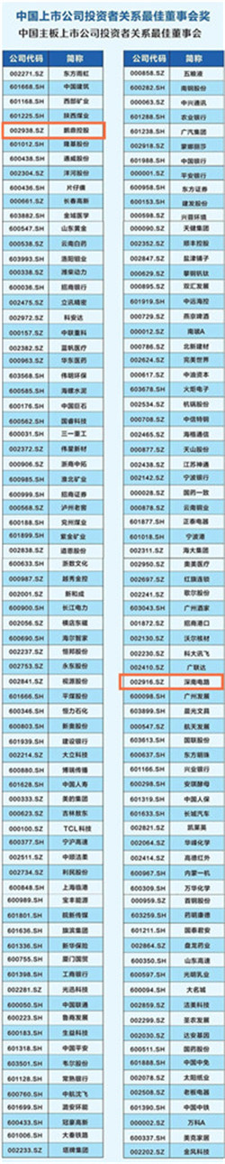 鹏鼎控股、深南电路获中国上市公司投资者关系最佳董事会奖-中国主板上市公司投资者关系最佳董事会;