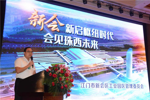 江门新会区工业园区管理委员会党组书记、管委会主任练庆铭对江门新会工业园进行介绍。