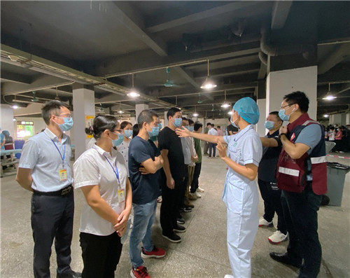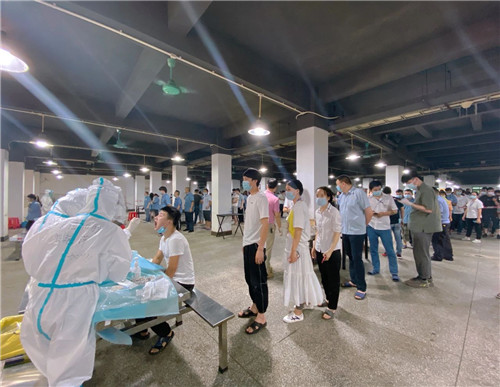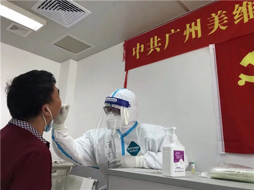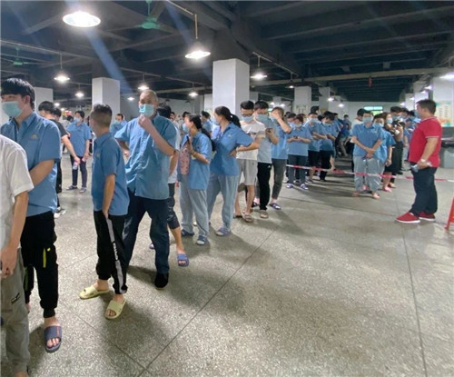 积极配合,高效完成。到2021年6月4日晚上8点,核酸检测医护人员抵达广州美维检测点,启动大规模核酸检测工作。公司员工有条不紊的排队,10人一组有序进出,积极配合医护人员进行咽拭子采样,高效率完成核酸检测工作。截止到6月5日,广州美维电子有限公司全体成员累计完成核酸检测采样共计4165人,做到 "应检尽检",确保不落一人。