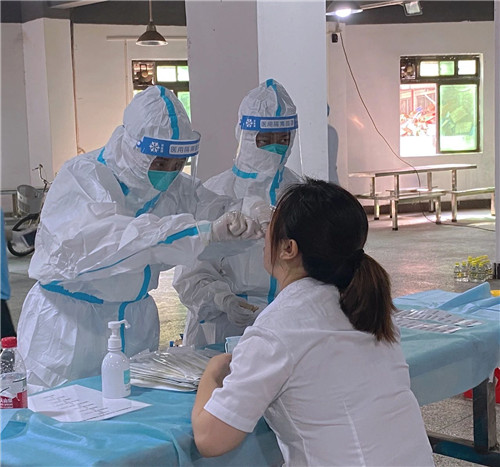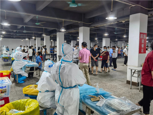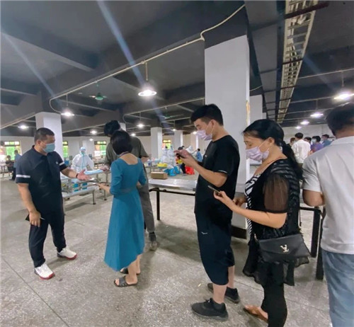 为积极防范疫情输入风险,切实保障大众健康安全,东莞主动出击、防线在前。6月7日,为响应东莞市政府发起的全市范围内大规模核酸筛查号召,在卫健局的统筹下,东莞五株行政部积极配合安排,协助医护人员到公司生活区为全厂3000多名员工及家属进行免费核酸检测取样。