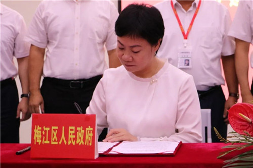 出席本次签约仪式的领导有:梅州市副市长温向芳,市工信局、市商务局等相关部门负责同志和梅江区委、区政府领导,区属相关职能部门领导及博敏电子董事长徐缓、PCB营运总裁叶新锦、董事/财务总监刘远程、PCB副总裁/梅州厂区执行总经理韩志伟、PCB营运总裁特助/梅州新项目执行总经理冯冲等20余人。