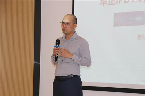 然后本项目的业务总负责人任英杰博士,对IPD项目的目的和意义做了进一步的阐述,并传达了对各部门能够积极参与、共同协作、达成项目目标的期望。